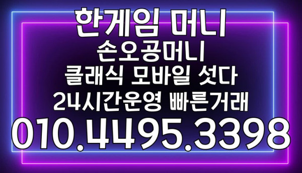 안전하고 믿을 수 있는 한게임머니상믿을만한곳 ‘손오공머니’와 함께 하세요. 상담 및 문의는 010-4495-3398로 연락 주세요.