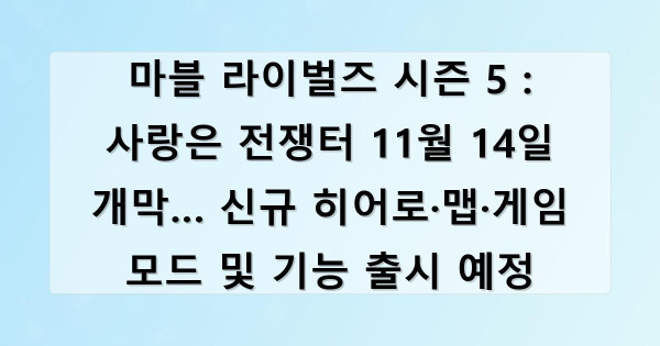 마블 라이벌즈 시즌 5 : 사랑은 전쟁터 11월 14일 개막… 신규 히어로·맵·게임 모드 및 기능 출시 예정