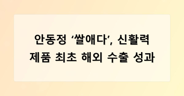 안동정 ‘쌀애다’, 신활력 제품 최초 해외 수출 성과