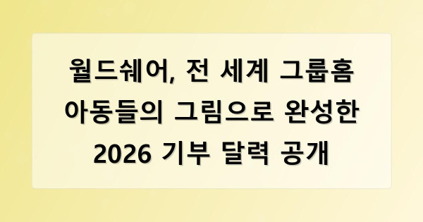 월드쉐어 온라인커뮤니케이션팀 박현경 선임은 “이번 기부 달력은 그룹홈 아이들이 후원자님께 전하는 감사의 편지이자 희망의 메시지”라며 “2026년 새해에도 후원자와 아이들 모두에게 따뜻한 사랑이 이어지길 바란다”고 말했다.