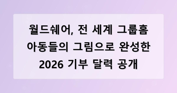 --국제구호개발 NGO 월드쉐어가 전 세계 그룹홈 아동들의 그림으로 완성한 2026년 기부 달력을 공개하고, 후원자에게 감사의 마음을 전하며 나눔 참여를 독려하는 기부 달력 이벤트를 진행한다.