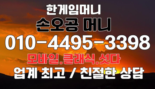 안전하고 빠른 한게임머니충전은 ‘손오공머니’와 함께하세요. 궁금하시면 010-4495-3398로 연락 주세요.