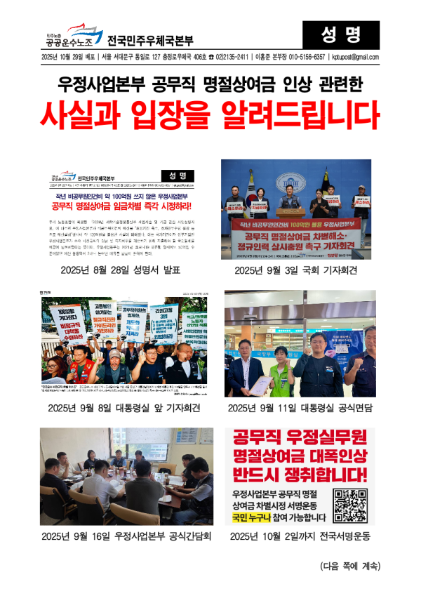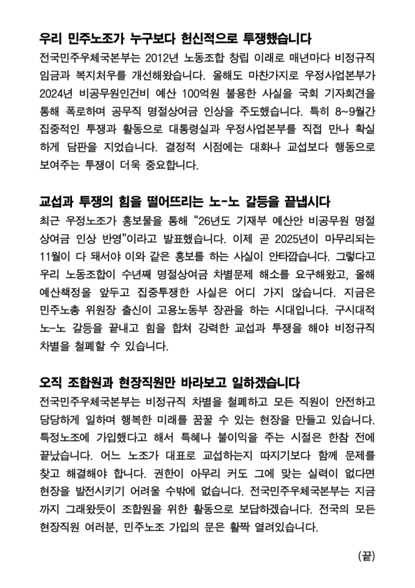 [성명] 공무직 명절상여금 인상 관련 사실과 입장을 알려드립니다