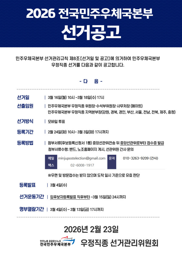 [공고] 전국민주우체국본부 우정직종 선거공고]